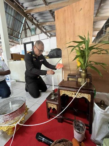 โดยมีพันตรีเทิดศักดิ์ สุขเกษม ทหารประจำการศูนย์ฯ และสมาชิกกลุ่มแปรรูปผลิตภัณฑ์จากกระจูด กลุ่มทอผ้า จำนวน 30 คน ร่วมทำบุญ เพื่อรำลึกในพระมหากรุณาธิคุณ สมเด็จพระนางเจ้าสิริกิติ์ พระบรมราชินีนาถ พระบรมราชชนนีพันปีหลวง ที่ทรงเยี่ยมพสกนิกร บ้านเนินธัมมัง ต.แม่เจ้าอยู่หัว อ.เชียรใหญ่ จ.นครศรีธรรมราช ในวันที่ 7 ตุลาคม 2537